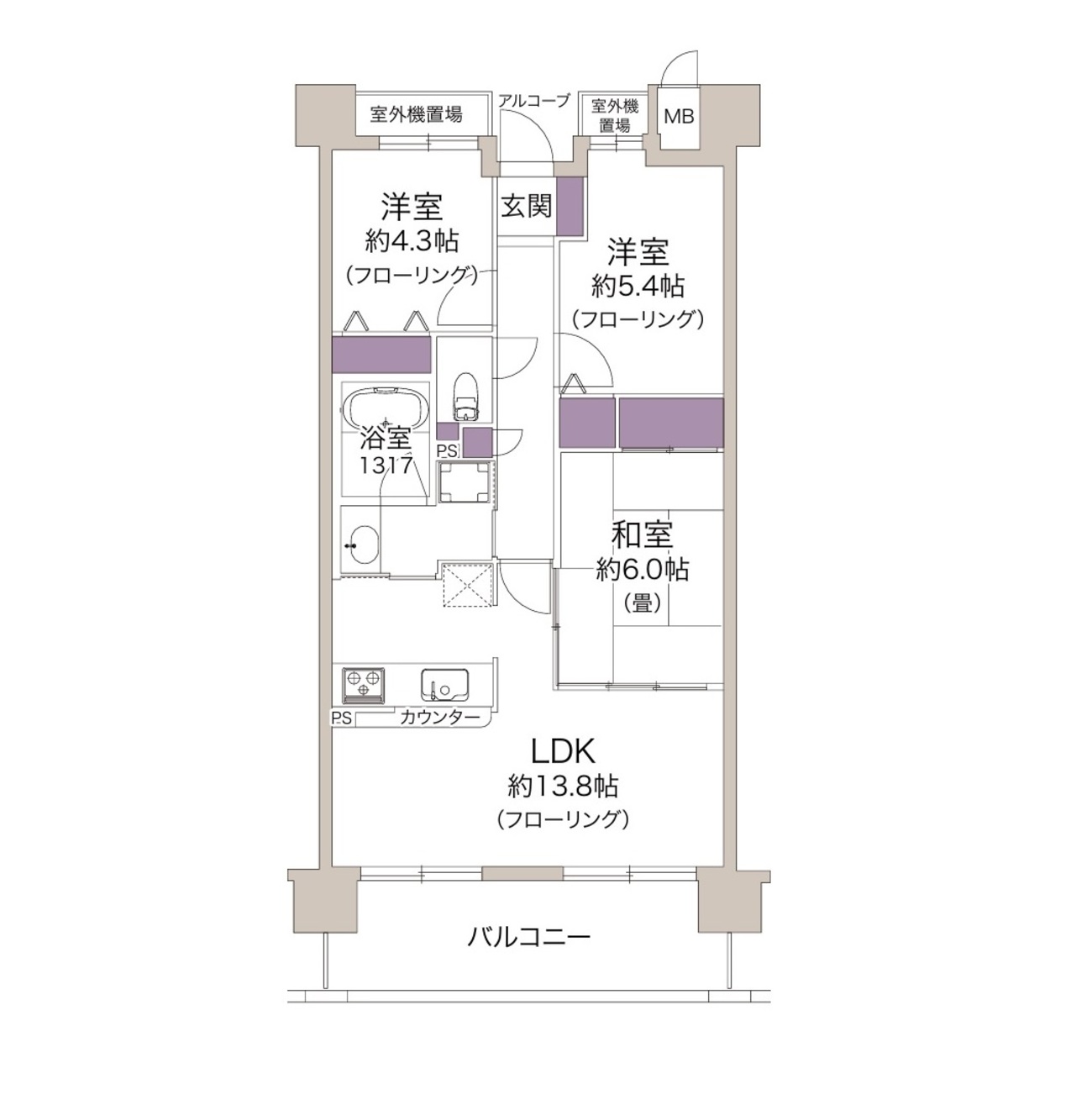 - バルコニー面積