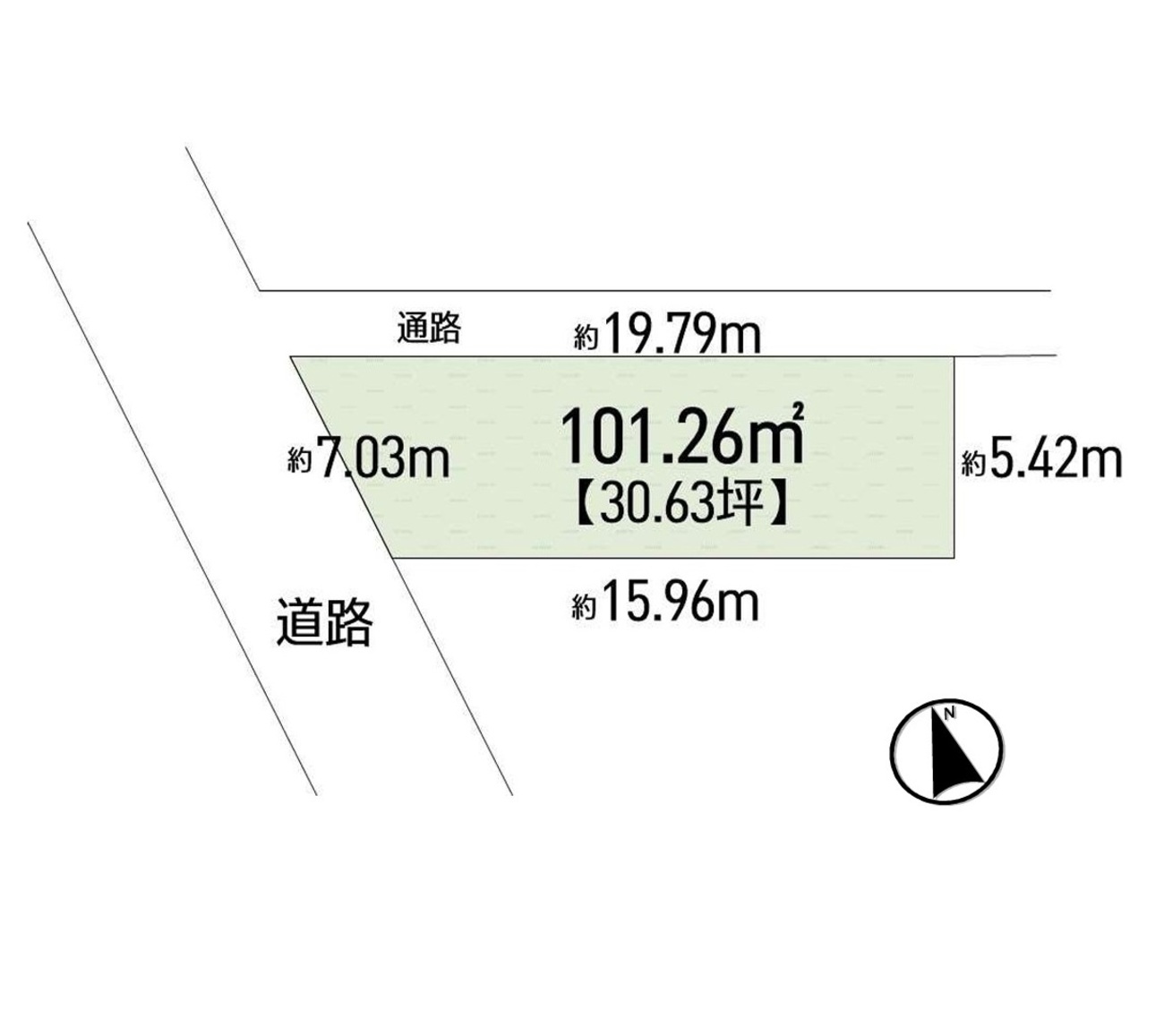 ■土地の実測面積は101.26m2(30.63坪)です。