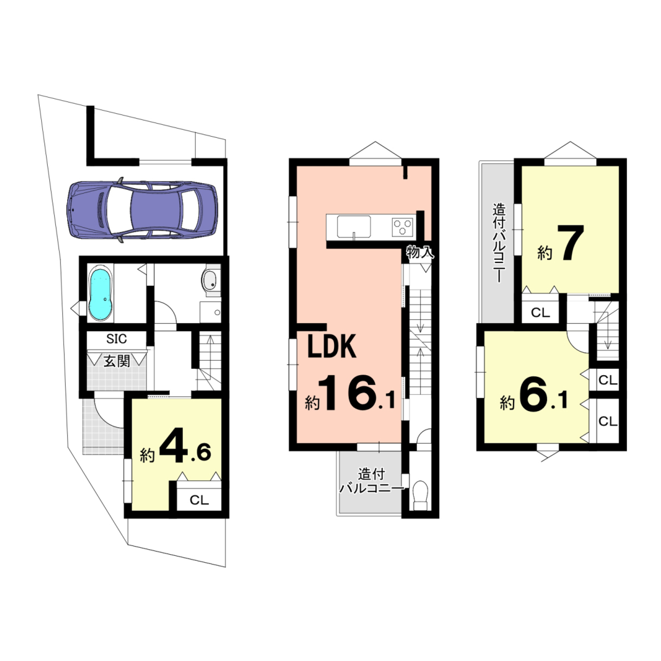 ■造付バルコニー:2F 3.24㎡ / 3F 4.05㎡