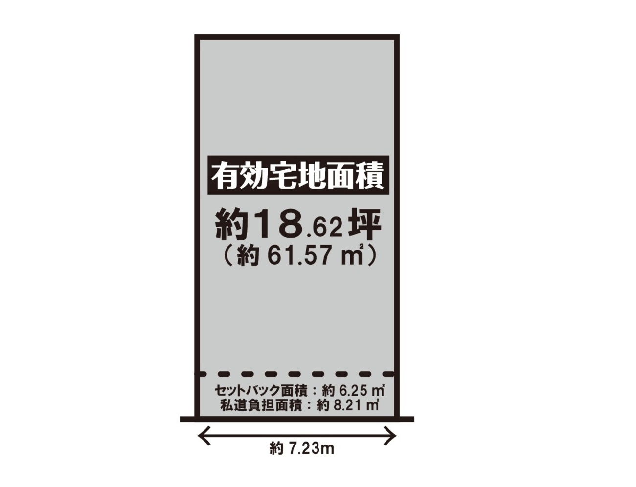 ※有効宅地面積:約61.57(約18.62坪)